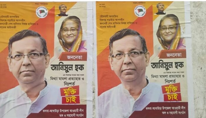 আওয়ামী লীগ সরকারের সাবেক আইন বিচার ও সংসদবিষয়কমন্ত্রী ও ব্রাহ্মণবাড়িয়ার-৪ (কসবা-আখাউড়া) আসনের সংসদ সদস্য আনিসুল হকের মুক্তি চাই পোস্টারে ছেয়ে গেছে আখাউড়া উপজেলার বিভিন্ন এলাকা।