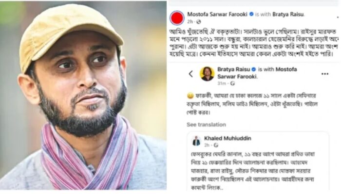 ফারুকী তার পোস্টে আরও লেখেন, “আমিও খুঁজতেছি ঐ বক্তৃতাটা। সালটাও ভুলে গেছিলাম। রাইসুর মারফত মনে পড়লো ২০১১ সাল।“ রাইসু মূলত আজ খালেদ মহিউদ্দিনের আপলোড করা একটি পোস্ট ফারুকীর সাথে শেয়ার করেন, যা দেখে ফারুকীর এই স্মৃতিচারণ।