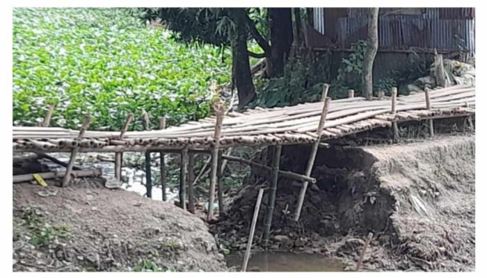 পুরাতন ব্রীজটা ভেঙ্গে বাঁশের মাছা (পাটাতন) করে দেওয়া হলেও কয়েক মাসেই অত্যন্ত ঝুঁকিপূর্ণ হয়ে পড়েছে এটি। রোববার (২৯ সেপ্টেম্বর) সরেজমিন গিয়ে জানা যায়, নতুন ব্রিজ নির্মাণ করতে গত মে মাসে পুরাতন ব্রিজটি ভেঙ্গে মানুষ ও যানবাহন চলাচলের জন্য রাজি নদীটির উপর (যদিও এখন সরু খাল) একটি বাঁশের মাছা তৈরী করে দেওয়া হয়।