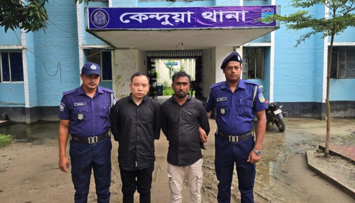 নেত্রকোনা জেলার কেন্দুয়া থানায় দায়েরকৃত মানবপাচারের মামলায় চীনা নাগরিকসহ দুইজনকে গ্রেফতার দেখিয়ে নেত্রকোনা জেলা কারাগারে প্রেরণ করেছে কেন্দুয়া থানা পুলিশ।