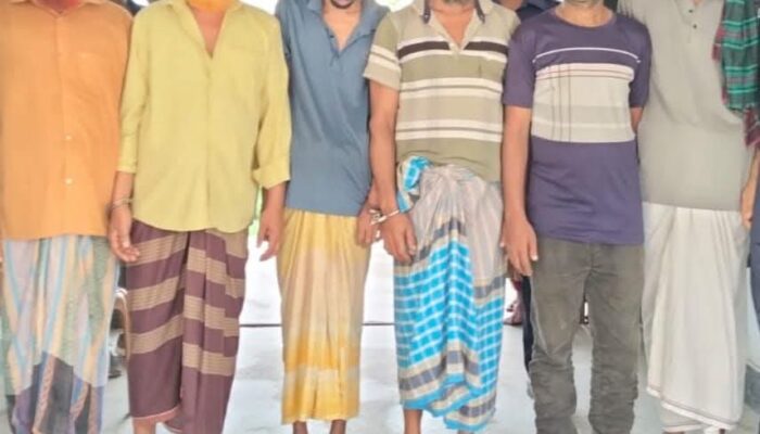 বৃহস্পতিবার গভীর  রাতে আনুমানিক ১টা ৩০ মিনিটে পৌর শহরের মধ্য বাজার তরকারি মহলে অভিযান  পরিচালনা করে ১০টি দেশীয় অস্ত্রসহ  সাজ্জাদ তালুকদার (৪৮) নামে একজনকে আটক করা হয় । এছাড়া রাত ২টা ৩৫ মিনিটে পৌর শহরের ৩নং ওয়ার্ডের ওয়াশেরপুর গ্রামের আফাজ উদ্দিনের বাড়ি থেকে একই গ্রামের আজিজুল হক (৫৫), ইউসুফ মিয়া (৫০) এবং কান্দিউড়ার এখলাছ মিয়া (২৮) ও নজরুল হক (৫৩)কে নগত ২২হাজার ৩০টাকা, জুয়া খেলার সরঞ্জাম- তাস ও একটি চাদরসহ আটক করা হয় তাদের।