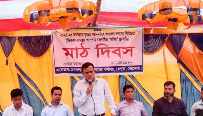 কেন্দুয়া (নেত্রকোণা) প্রতিনিধিঃ নেত্রকোণার কেন্দুয়া উপজেলায় ২০২৪-২৫ অর্থবছরে বৃহত্তর ময়মনসিংহ অঞ্চলের ফসলের নিবিড়তা বৃদ্ধিকরণ প্রকল্পের আওতায় বাস্তবায়িত “সরিষা” প্রদর্শনীর মাঠ দিবস ও আলোচনা সভা অনুষ্ঠিত হয়েছে ।