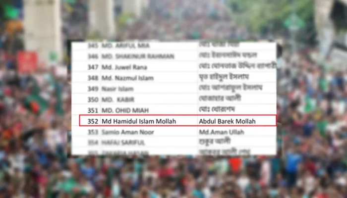 তালিকায় হামিদুল ইসলাম মোল্লা ওরফে জুয়েল মোল্লার নাম