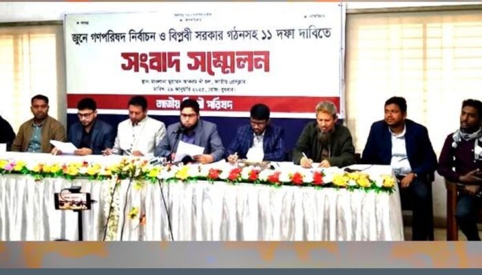 জাতীয় বিপ্লবী পরিষদ আসন্ন জুন ২০২৫-এ গণপরিষদ নির্বাচন এবং রাষ্ট্রপতি শাসিত বিপ্লবী সরকার গঠনের দাবিতে ১১ দফা ঘোষণা করেছে। ৫ আগস্টের ‘ফ্যাসিস্ট’ সরকারের পতনের মধ্য দিয়ে জুলাই মাসের গণবিপ্লব বিজয়ী হলেও, অন্তর্বর্তী সরকার বিপ্লবের মূল চেতনার পরিপন্থী কার্যকলাপ করছে বলে অভিযোগ করেছে জাতীয় বিপ্লবী পরিষদ।