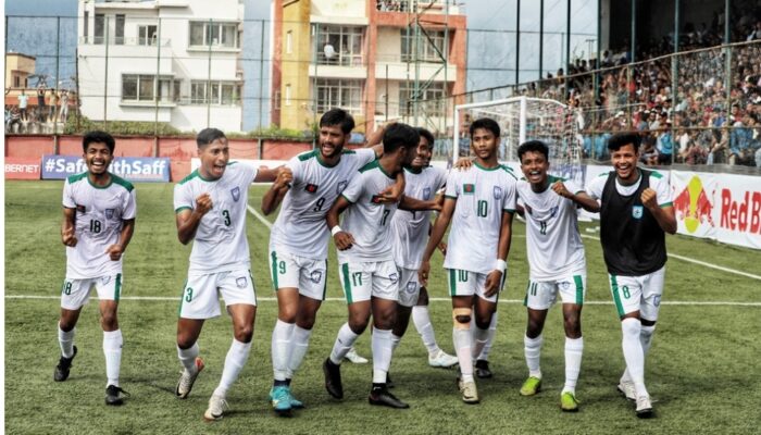 আর তাতেই নেপালে আরেকবার উড়ল লাল-সবুজের পতাকা। স্বাগতিক দলকে ৪-১ গোলে হারিয়ে অনূর্ধ্ব-২০ সাফের শিরোপা জিতল বাংলাদেশ। গত আসরে ফাইনালে স্বপ্ন ভঙ্গ হলেও এবার শিরোপা নিয়েই ফিরছেন যুবারা।