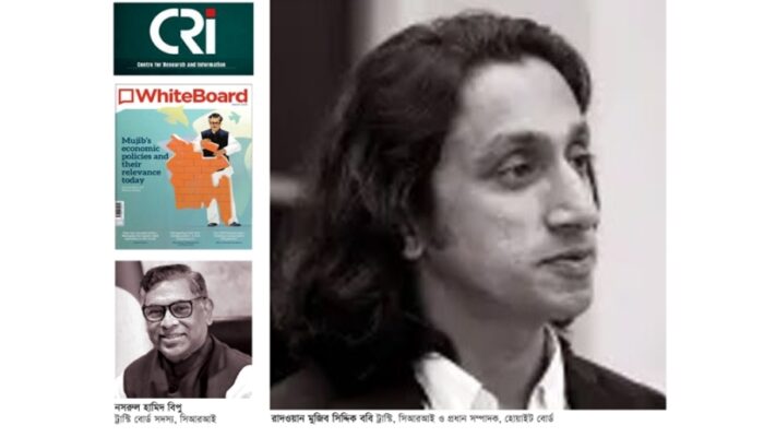 শেখ হাসিনা টানা ১৫ বছর ৭ মাস সরকারপ্রধান থাকাকালীন ২০২০ সালের ২০ সেপ্টেম্বর যাত্রা করে সিআরআইয়ের ম্যাগাজিন হোয়াইট বোর্ড। দেশের প্রথম পলিসি ম্যাগাজিন দাবি করা এ প্রকাশনাটি নীতিনির্ধারণী বিষয়ক নির্মোহ ও সার্বিক পর্যালোচনা করবে—উদ্বোধন অনুষ্ঠানে এমন বার্তা উঠে আসে প্রধান সম্পাদকের দায়িত্বে থাকা বঙ্গবন্ধুর দৌহিত্র রাদওয়ান মুজিব সিদ্দিকের বক্তব্যে।