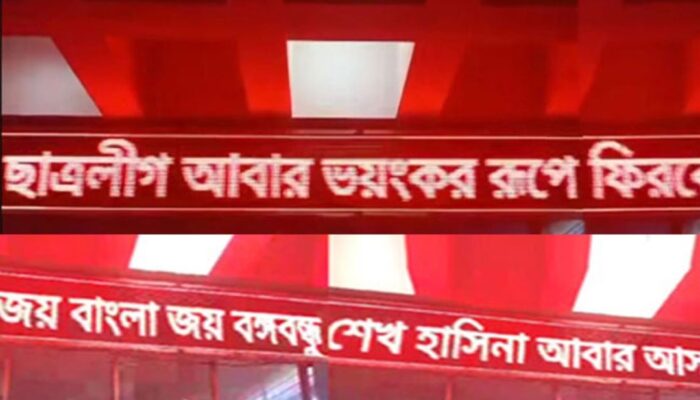 স্থানীয় ছাত্র-জনতা জানান, শনিবার সন্ধ্যার দিকে খুলনা রেলস্টেশনের ডিজিটাল বিলবোর্ডের স্ক্রলিংয়ে ‘ছাত্রলীগ আবার ভয়ঙ্কর রূপে ফিরবে, জয় বাংলা জয় বঙ্গবন্ধু শেখ হাসিনা আবার আসবে’ এমন একটি লেখা প্রকাশ করা হয়।