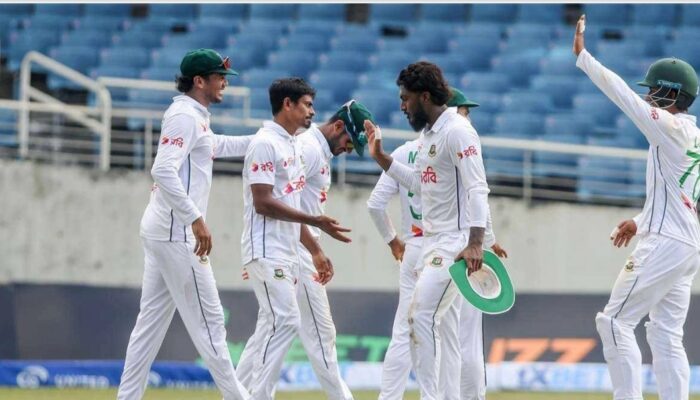 প্রথম টেস্টে বড় হারের পর ঘুরে দাঁড়ানোর লক্ষ্য নিয়ে দ্বিতীয় ও শেষ টেস্টে টস জিতে ব্যাট করার সিদ্ধান্ত নেন মেহেদী মিরাজ। ব্যাটিং বিপর্যয়ে পড়ে তার দল। মাত্র ১৬৪ রানে অলআউট হয় বাংলাদেশ। ওপেনার সাদমান ইসলাম দলের পক্ষে সর্বোচ্চ ৬৪ রান করেন ।